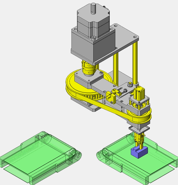 注意藍色產品有個掉頭的左右,藍色產品如果有前后方向的話1.假設來的方向是沿著輸送帶出來,換個角度90度之后。就是外部的公轉90度,由于同步帶的存在,產品本身也自轉了180度。實現了掉頭的作用, 2.公轉90度+自轉180度 |