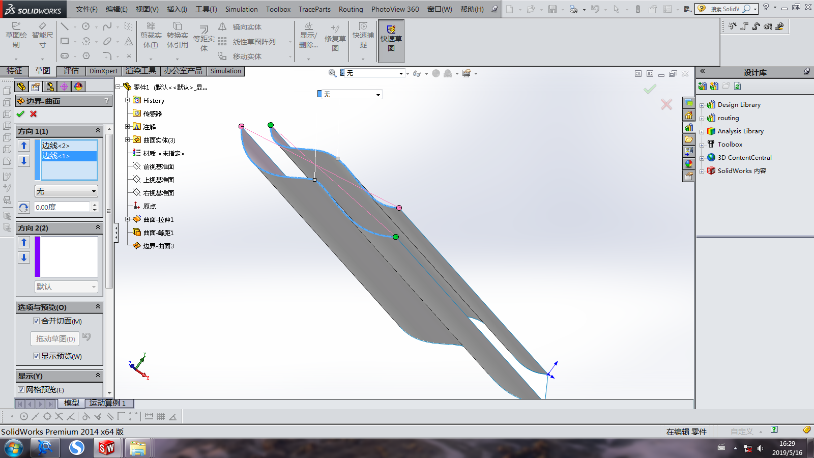 遠祥 發表于 2019-5-17 10:07$ w! t1 @8 X; G0 K n u( L% v* Y 選取的是相同的兩條邊線,圖一不能夠生成,圖2生成了,應該不是破面的問題,會不會是方向的問題啊,怎樣改變方向我不知道如何操作,有哪位可以指點一下 |
