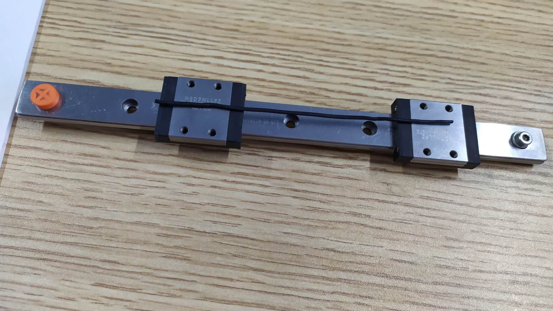 | 兩個滑塊,每個滑塊的上邊做兩個輪,把線夾住,用手捏住,兩邊一拉。 |