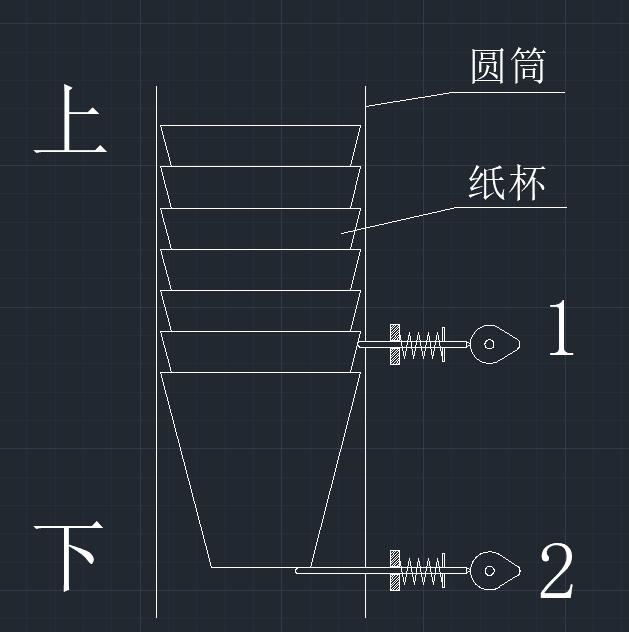 | 4樓正解。實(shí)際應(yīng)用當(dāng)中紙杯并不能在重力作用下自由下落,必須用分離機(jī)構(gòu) |