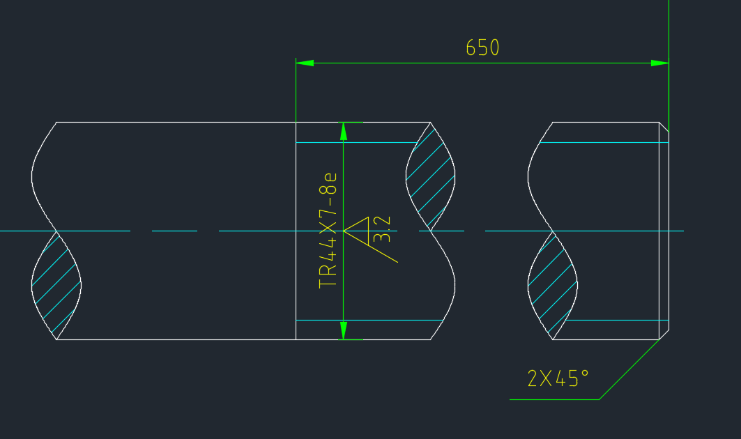 | 倒角尺寸不對吧,標準GB/T 32537-2016規定,梯形外螺紋端面倒角為45°,也允許30°或60°,倒角深度應該大于或者等于螺紋牙型高度 |