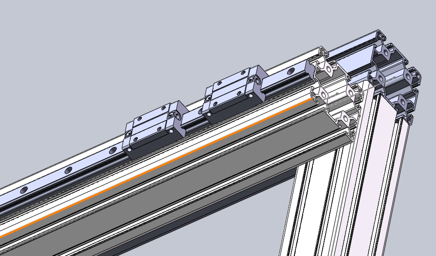 | 實際這么裝精度就挺難保證了。我裝過,還加了墊板。但是實際鋁型材槽有間隙的,即使加了墊板會下墜。最上方最好加個板拉住墊板保持設計高度。 |