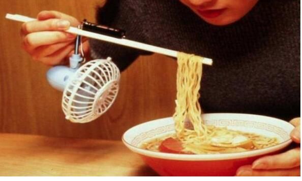 | 吃苗條,筷子上帶個諾大個風機,筷子挑起面條,還要擔一個偌大個風機,感覺有點怪怪的。 |