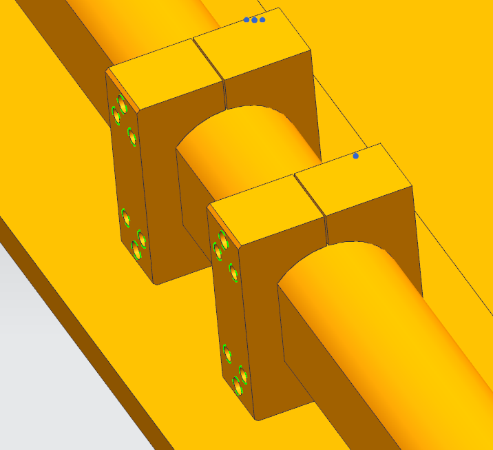 | 圖片左邊的零件是不是做一個矩形塊就可以了,兩側螺母拉緊的,兩個對接塊不用隔那么近吧 |